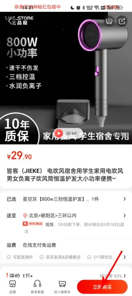 3.配送高效:依托京東旗下達達集團的即時配送網絡達達秒送,覆蓋全國多個城市,主打最快9分鐘送達的極速配送體驗,通常在幾分鐘到幾十分鐘內完成配送。